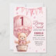 Pink Baby Girl Air Ballon Teddy Bear Birthday Invitation
