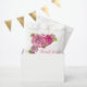These pretty, floral pink Baby In Bloom favour bags would be the perfect addition to your celebration. Features pink gerbera daisy and hydrangea blossom flowers with green ferns on a white background.