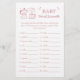 Get guests laughing and competing with this Pink Baby Word Scramble baby shower game card. Featuring a cozy coffee cup with heart and mocha kettle in a simple rustic design, this card is a fun way to keep everyone entertained while celebrating the mommy-to-be. Guests unscramble baby and shower-related words, and the first person to finish them all wins!