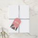 Tropical baby shower favour tag with tropical leaves in shades of pink and green and wood grain reverse side.