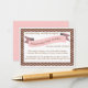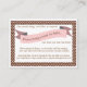 A charming poem requests that guests bring a book for the baby-to-be to start the new mum off with a library of beloved children's books. Just insert this sweet card inside the baby shower envelope, the brown and pink polka dot design is perfect to coordinate with just about any baby girl shower invitation too.