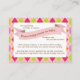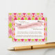 A charming poem requests that guests bring a book for the baby-to-be to start the new mum off with a library of beloved children's books. Just insert this sweet card inside the baby shower envelope, the sweet pink and green argyle design is perfect to coordinate with just about any baby girl shower invitation too.