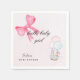 A baby shower napkin featuring a pink watercolor bow and light pastel elements, perfect for celebrating the arrival of a baby girl.