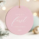 Celebrate your baby's first Christmas with this elegant and timeless ornament, personalized with your baby's name and photo. Featuring a simple, girly pink design this keepsake will hold cherished memories for years to come. Perfect as a gift for new parents or to add a special touch to your own tree, this ornament is a beautiful way to commemorate this precious milestone.