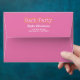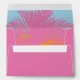 A fun pink envelope with "Bach Party" above the bride to be's name and address (Optional). The inner lining has cute pink palm tree art on a blue yellow sky.