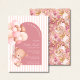 Celebrate your little girl's arrival with this Teddy Blooms & Golden Dreams baby shower invitation! Featuring a charming watercolor design, this invitation showcases a cute girl teddy bear holding a bouquet of pastel pink and brown balloons, framed by a soft arch backdrop with elegant pink stripes and mauve floral accents. The golden brown swirl details add a touch of warmth and sophistication, making it perfect for a modern and feminine baby shower. Available as a printable or digital file, this invitation coordinates beautifully with matching tableware, signs, favours, and thank you cards for a fully styled celebration.