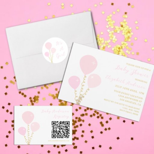Pink Balloons Girl Baby Shower Invitation