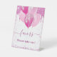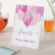 A party favour table sign. A white background with elegant faux sparkles and pastel pink and hot pink balloons. Pink letters.