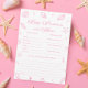 Pink Beach Baby Shower Baby Predictions Game Card