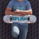 An aerial view of a pink beach with turquoise water in Bermuda. This photograph with a fun, cheeky Splish - Splash message is the perfect backdrop for your skateboard. Add your name to it and make it uniquely yours. You can change the fonts, font colours, and message.
