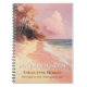 A lovely vintage style digital painting of a beach with pink clouds and brown tone palms a blank notebook fitting for a memorial service guest note book.