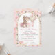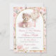 Blush Pink Bear Baptism & First Birthday Invitation, Teddy Bear Girl Christening Invite, Editable Floral Birthday and Baptism