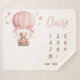 Pink Bear in Hot Air Balloon Baby Milestone Sherpa Blanket