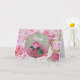 Here is a card that has an image of a bed of lovely pink roses along with a vintage-inspired watercolor frame in various colours of green and pink. The front text and message inside of the card can be replaced with your own unique sentiments.