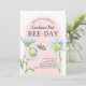 Bee birthday invitation with pink background and watercolor daisy flowers! So sweet for a baby girl's first birthday party. © 2025 Tea Olive Co.