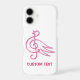 Line art of treble clef symbol forming a pink bird. Custom text.
