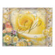 The design features a dreamscape design, a whimsical blend of pastel flowers and yellow roses, pink magical bird (can you spot it at the left side of the design?), gold pearls, and abstract art, all decorated with gold and silver flourish decor elements, combined with beautiful mixed media collage to capture the visual interest.