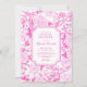 This chinoiserie-inspired design features elegant botanical florals, birds and greenery in hot pink and white. Personalise the invite with your details and if you want to further re-arrange the style and placement of the text, please press the "Click to customise further" button.