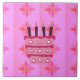 This artwork prominently features a stylised two-tiered birthday cake adorned with lit candles, set against a background of a repeating floral motif. The entire design employs a baby pink colour scheme, creating a gentle and inviting aesthetic.