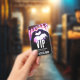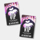 Concert Ticket All Access Special Event VIP Badge. Perfect for concerts, special events like conferences or speakers, and even birthday parties. This design features a fun concert-themed vibe with someone holding their hands in a heart shape silhouette. The background now has a stylish pink and black aesthetic, with vibrant pink lights and subtle hints of blue scattered throughout for an energetic glow.