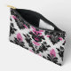 Stylish Pink and Black Damask style pattern on a silver background accessory pouch.