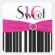 This black and white striped sweet 16 sticker/envelope seal has a hot pink faux ribbon and jewels and matches the sweet sixteen invitation shown below. If there are any other matching items you require, please email niteowlstudio@gmail.com with your request.