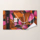 This hand towel for a basketball player features easy-to-personalise athlete name and jersey number plus team name overlying the background image of a bunch of randomly arranged basketballs - each of the basketballs has two recolored panels--one pink and one black - the minimalist image of a basketball (as represented by its seams only in white) is centred on the towel - the team mascot name can be personalised on black horizontal varsity stripes at the bottom edge of the towel - background colour is customisable basketball-orange - by katz_d_zynes