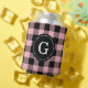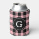 Pink Black Buffalo Check Plaid 1I Monogram Can Cooler