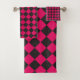 Pink Black Chequered Diamond Pattern Bath Towel Set