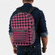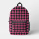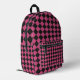 Pink Black Chequered Diamond Pattern Printed Backpack