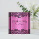 This Elegant customisable Bachelorette Party Invitation features a pink damask lace pattern on a black background. Customise it by adding your details in the font of your choice! PLEASE NOTE that the bow is a printed image.