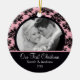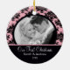 Our Photo First Christmas Ornament features a beautiful black & pink damask background with a black band! Personalise with your information and date and you're all set to go! Wonderful dated keepsake gift for your first christmas and a great addition to you christmas ornament collection.
