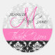 Pink, Black and White Damask Wedding Favour Thank You Stickers personalised with Monogram. initial and bride and groom names. By Elke Clarke ©. An elegant way to label your wedding favours. Need a different colour combination? Contact us. More designs at http://www.luxuryweddinginvites.com. Graphics licensed for commercial use.