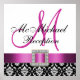 Customisable Wedding Reception Sign Poster. This gorgeous wedding reception sign is printed with a Black and White Damask pattern and a photo of a pink satin ribbon with a square diamond brooch. Personalise with your name and monogram initial. Layout Design by Elke Clarke. Graphics licensed. Everything is perfect and planned to perfection and then you see that someone has handwritten a sign to lead people to your reception hall. Why not use this elegant poster. You can add your own wedding reception information to this design to make sure your guests have all the information they need.