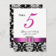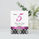 Pink, Black Damask Wedding Table Number Cards for the wedding reception. Layout Design by Elke Clarke©. Graphics licensed. Pink satin ribbon and diamond jewels are printed and not real. Customise with your personal information, wedding date and table number. Order one per table with each table number but still receive the bulk discount for total number ordered. Please contact luxuryweddinginvitations@gmail.com for different coloured ribbon and damask.