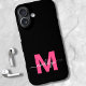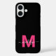 Personalised Magenta Hot Pink Black Script Initial Monogram Phone Case. Add a bold, vibrant touch to your phone with this chic and personalised phone case. Featuring a sleek black background, a bold magenta hot pink initial, and a flowing white script name, this design offers a fun and feminine look with a modern edge. Perfect for sorority sisters, students, or anyone who loves a playful yet elegant style, this phone case makes a thoughtful gift for birthdays, holidays, or any special occasion. Practical, personalised, and full of personality, this phone case is the perfect way to elevate your everyday accessories.