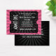 Funky and fresh pink and black design with rays of light. Use this 2.5"x3.5" (just slightly larger than a standard business card) card for all your special events and performances. Make your event more refined and memorable with professionally printed tickets. (without serial numbers or perforations). Perfect for social organisations, school plays, performing arts, non-profits, small businesses, sporting events and more! Easily enter all you essential details and quickly order your very own general or vip admission tickets. Rather than using generic numbered tear off tickets, use these and remind your patrons of the date, time and location of your event. Even include additional comments on the back! Customise the background colour by (after entering your text), click "customise it", then click "edit", then "background", and choose from hundreds of unique colours.