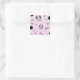 Pink & Black Fish Bones Puppy Dog Birthday Party Square Sticker