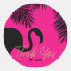 Pink & Black Flamingo & Palm Tropical Party Classic Round Sticker