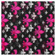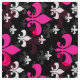 Pink and White Fleur De Lis French Retro lily Surface Pattern on black translucent background Fabric