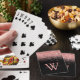 Modern playing cards in black and pink glitter, elegantly adorned with your script monogram, first name and initial.