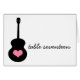 Hip and stylish Guitar Heart Wedding Table Number Card featuring a black acoustic guitar and a cute light pink heart. This modern and unique table card is perfect for your rocker chic music-themed wedding! Easy to customise, simply add the personalised text of your choosing in the text fields provided. Click on the "Customise It" button to find additional personalisation options.