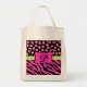 Pink, Black & Lime Green Zebra & Cheetah Skins Tote Bag