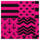 Pink and Black Mixed Patterns Patchwork Design of 16 Different Design illustration of Fleur-de-lis, crowns, hearts, Polka Dots, Greek key, irregular Abstract, Houndstooth, Trees, Harlequin, Stripes, Check, umbrella, anchor, Chevron, blob and flower floral illustration Designs.