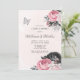 Pink Black Peony Silver Butterfly Couples Shower Invitation