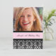 Custom Photo 18th Birthday party invitations in elegant black and pink classic floral damask pattern. Add your name, photo, and party details for a unique and stylish 18th birthday party invitation.
