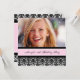 Custom Photo 18th Birthday party invitations in elegant black and pink classic floral damask pattern. Add your name, photo, and party details for a unique and stylish 18th birthday party invitation.