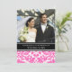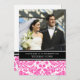 Elegant wedding vow renewal custom photo template invitations in chic and elegant bright fuchsia hot pink, black and white classic vintage damask floral pattern with fully customisable text to include your vow renewal ceremony details. Contact us for a custom colour.