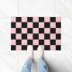 Pink Black Retro Checks Chequerboard Pattern Doormat