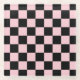 Pink Black Retro Checks Chequerboard Pattern Glass Coaster